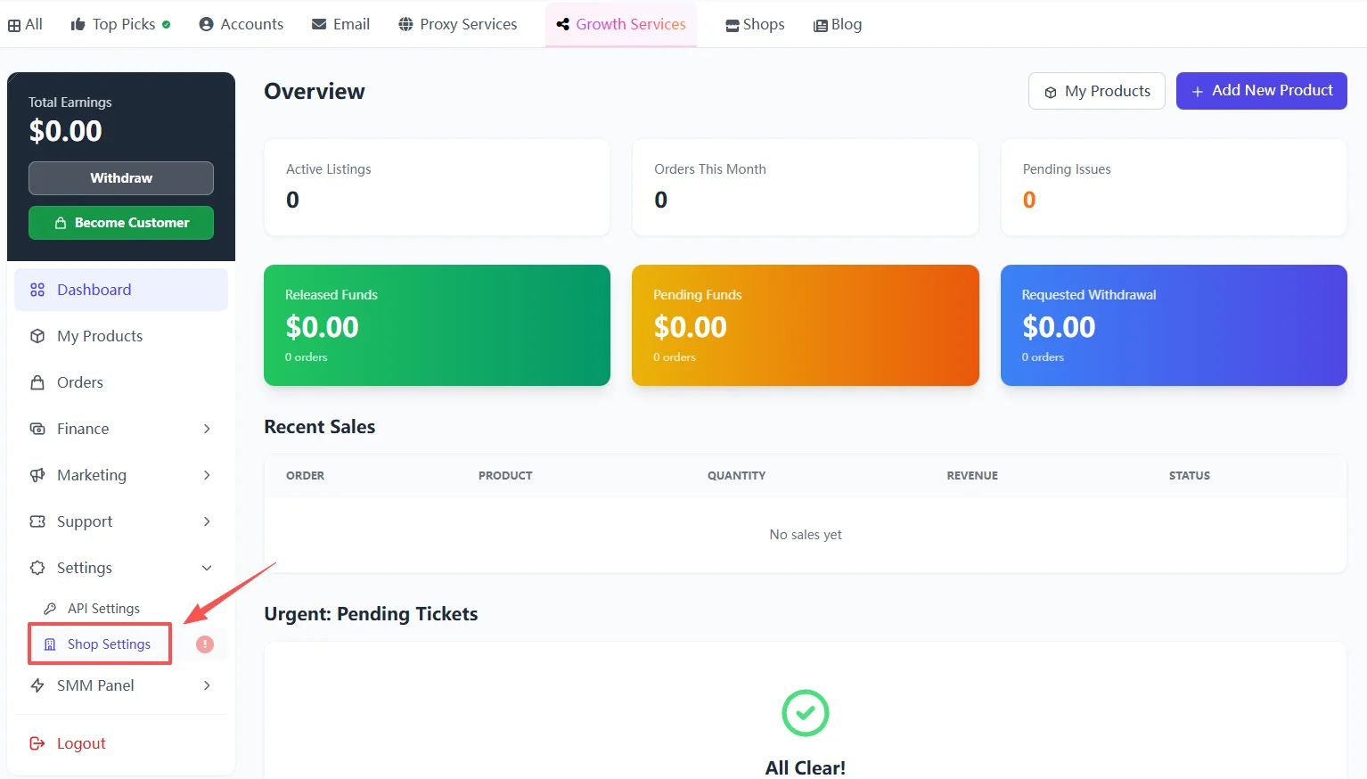 Step 1: Navigate to Shop Settings