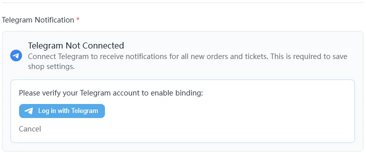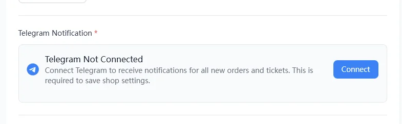 On the Shop Settings page, find the section called Telegram Notification*.